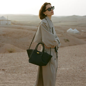 The Midi New York was inspired by our love for this amazing city, its energy, architecture and people. Its modern yet timeless silhouette and subtle luxury finish makes it the perfect day bag. The interior can be safely closed off with a central internal magnet. The comfortable tubular handles sit nicely in the crook of your elbow or can be held by hand. The base is constructed with triangular folds on each side and enhanced with metal feet. This bag is the perfect size to carry all essentials.